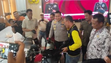 Kapolres Lamongan, AKBP Arif Fazlurahman saat menyerahkan kendaraan kepada korban Muhsin (foto: az) SUARABHINNEKA, LAMONGAN – Dua pria ditahan Polres…