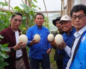 Pengurus DPW PAN Jatim foto buah melon hasil pertanian Petani Millenial Sedesa Farm (foto: ist)