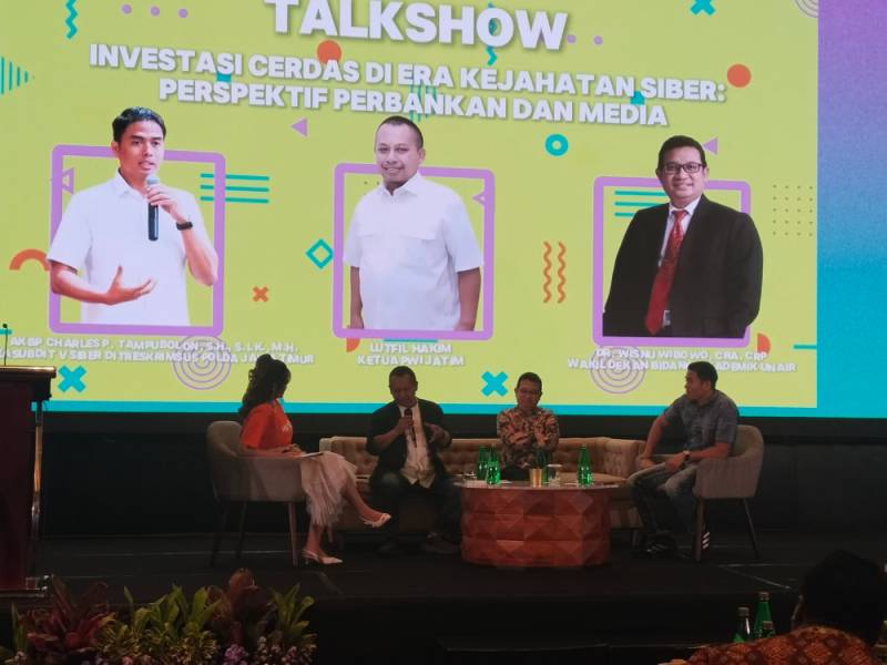 Ketua PWI Jatim, Lutfil Hakim dalam pemaparannya menjelaskan, tindak kejahatan siber kebanyakan berhasil mempengaruhi dan menipu masyarakat Indonesia yang ingin kaya secara instan. Sehingga tergiur dengan penawaran investasi yang menjanjikan keuntungan besar.