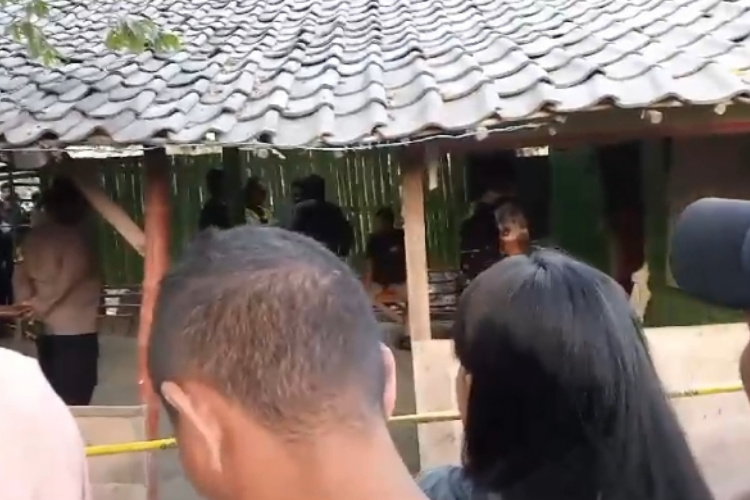 Warga berkerumun melihat polisi melakukan olah tempat kejadian perkara (foto: ist)