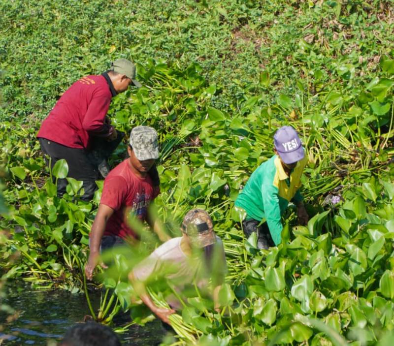 Jaga Kualitas Air Sungai, Pemkab Lamongan Bersihkan Eceng Gondok
