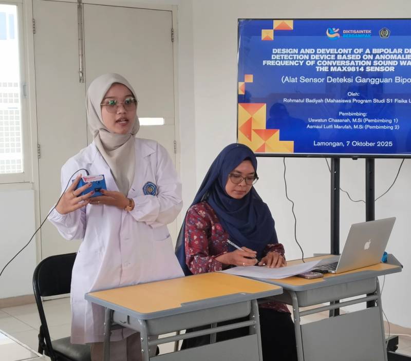 Alat pendeteksi gangguan bipolar berbasis analisis frekuensi suara percakapan tersebut, dibimbing oleh Uswatun Chasanah, M.Si sebagai pembimbing utama dan Asmaul Lutfi Marufah, M.Si sebagai pembimbing kedua.