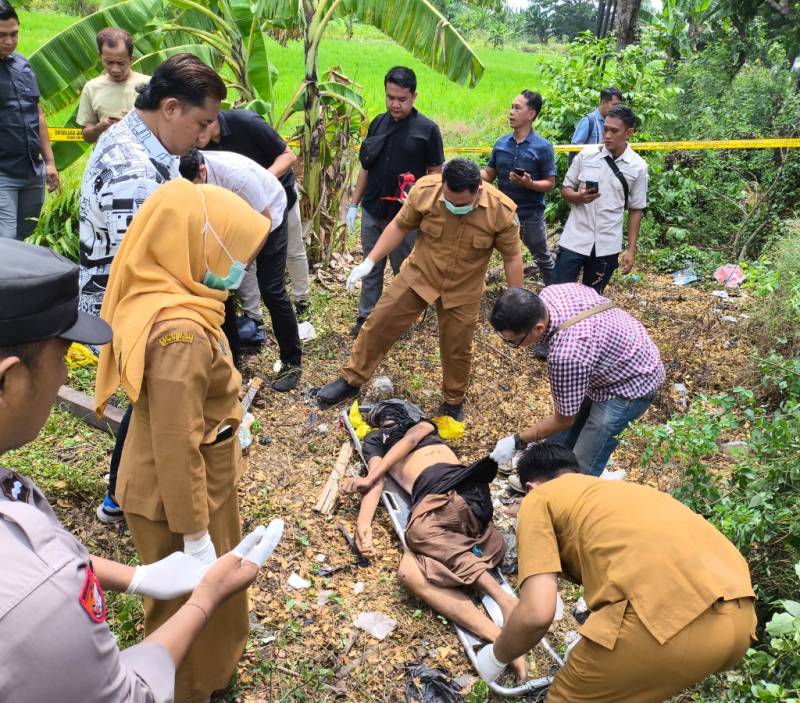Mayat tanpa identitas itu, ditemukan tergelat di parit dalam keadaan tangan, kaki dan mulut terikat. Selain itu juga, ditemukan sejumlah luka di beberapa bagian tubuh. Ada dugaan kuat korban tewas akibat pembunuhan.
