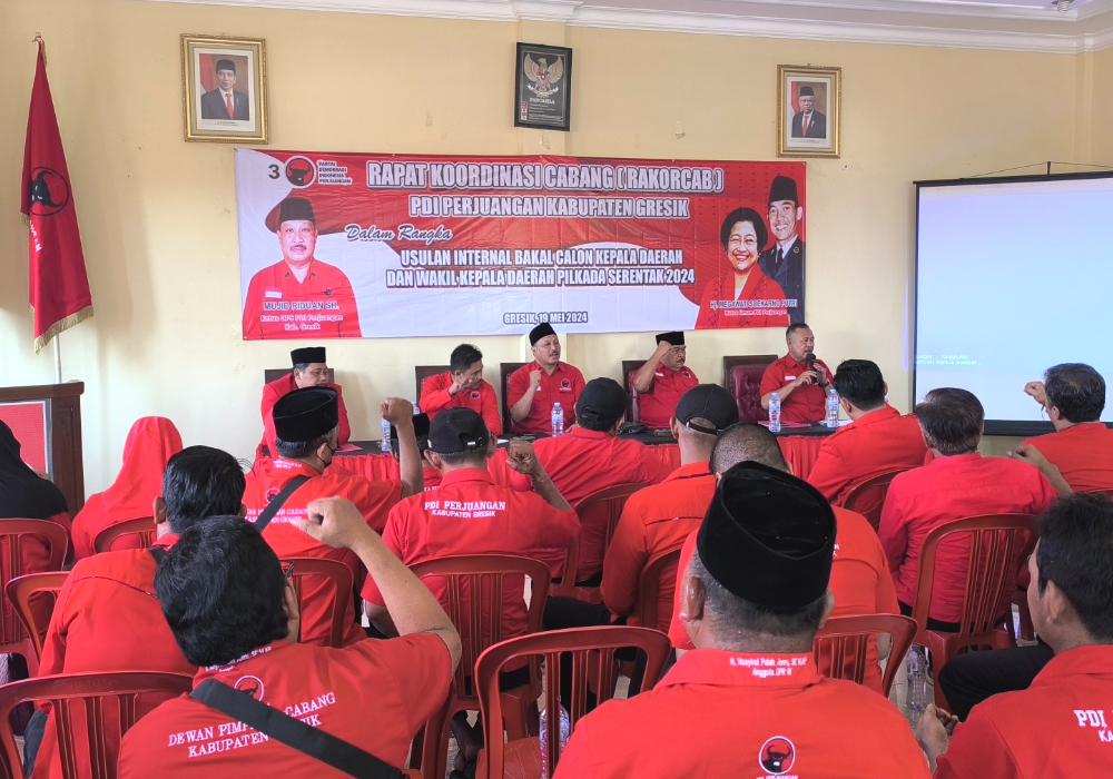 Ketua DPC PDI Perjuangan Gresik Mujid Riduan menyampaikan, Rakorcab digelar dengan melibatkan semua unsur KSB (ketua, sekretaris, bendahara). Hasilnya, ada empat nama dari kader internal dan satu eksternal.