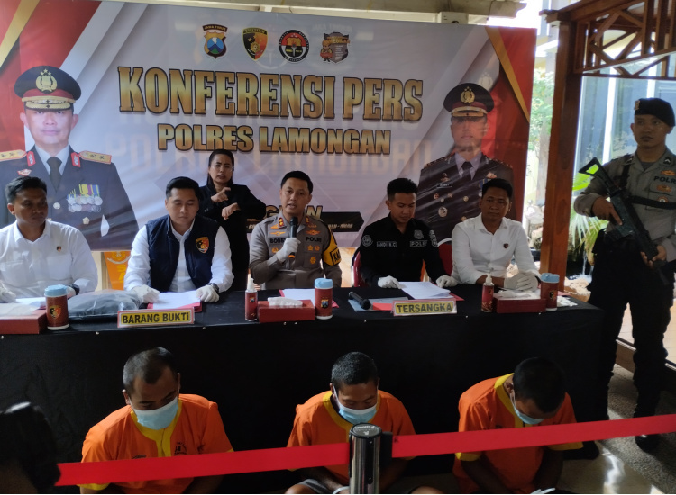 Kapolres Lamongan AKBP Bobby Adimas Condro Putra saat konferensi pers (foto : Zulfikar)